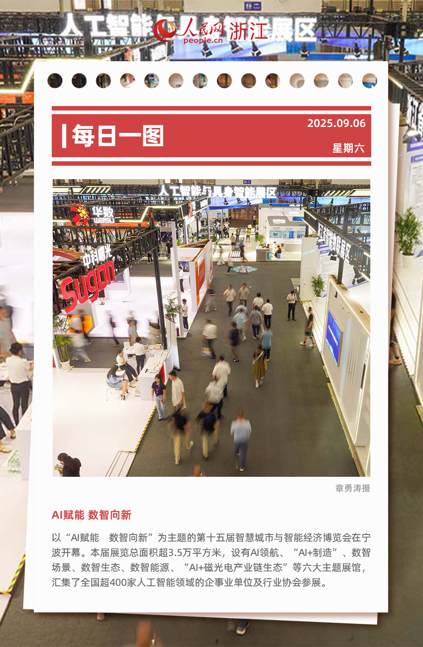 人民網寧波9月5日電 (章勇濤)今天,以“AI賦能 數智向新”為主題的第十五屆智慧城市與智能經濟博覽會(簡稱“智博會”)在寧波開幕。 本屆智博會展覽總面積超3.5萬平方米,設有AI領航、“AI+制造”、數智場景、數智生態、數智能源、“AI+磁光電產業鏈生態”等六大主題展館,匯集了全國超400家人工智能領域的企事業單位及行業協會參展?!?/a>