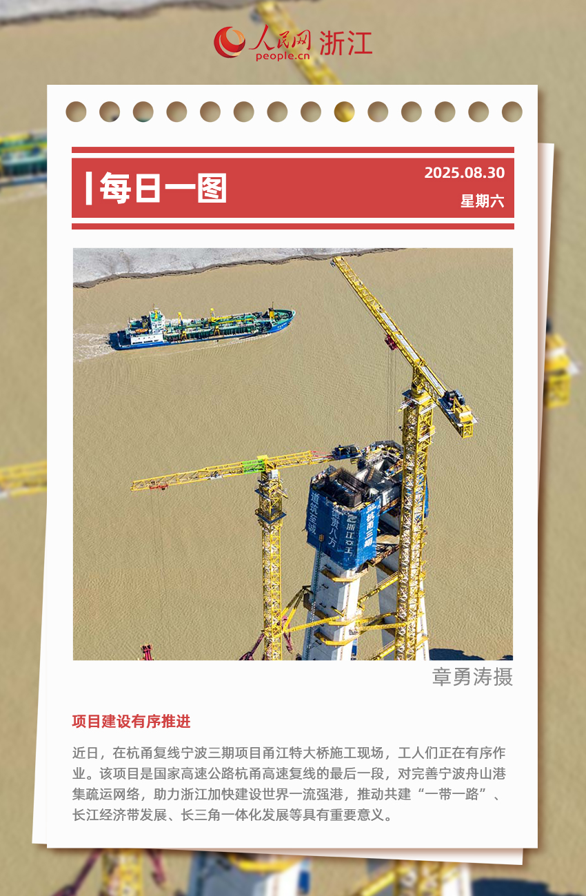 人民網杭州8月29日電 (章勇濤)近日,在位于浙江省寧波市鎮海區的浙江交通集團杭甬復線寧波三期項目甬江特大橋施工現場,工人們正在有序作業。 據悉,杭甬復線寧波三期項目是國家高速公路杭甬高速復線的最后一段,對完善寧波舟山港集疏運網絡,助力浙江加快建設世界一流強港,推動共建“一帶一路”、長江經濟帶發展、長三角一體化發展等具有重要意義?!?/a>