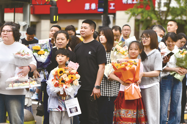 6月10日,歷時四天的高考落下帷幕,嘉興高級中學門口擠滿了等待學子凱旋的家長們。為了慶祝人生中這一重要時刻,家長們都有所準備,鮮花、蛋糕、奶茶,甚至全家出動為孩子“應援”?!?/a>