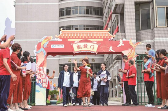 6月7日是2025年高考首日,嘉興市2.4萬余名學子走進考場迎接人生大考。在嘉興高級中學,高三學子穿越“凱旋門”,與老師擊掌鼓勁?!?/a>