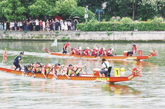 賽龍舟、吃粽子、佩香囊……5月31日是端午假期首日,紹興各地舉辦多彩活動,讓市民游客體驗傳統習俗,品味非遺。圖為越城區“運河端陽宴集”系列活動之一的龍舟賽在環城河上舉行,吸引眾多市民前來觀看?!?/a>