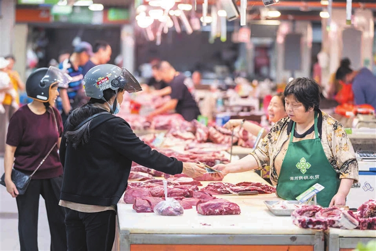 5月26日,湖州中心農貿市場里,市民正在選購菜品。目前,湖州各農貿市場、商超已加強對肉類、蔬菜、米面、蛋奶等生活物資儲備和供應協調,保障端午節“菜籃子”供應充足、價格穩定?!?/a>