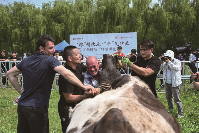 5月29日,在嘉興市南湖區梅花洲景區內,來自多個國家的外國友人體驗包粽子、舞龍、摜牛等端午傳統活動,感受中國傳統文化的魅力。(徐志達)?!?/a>