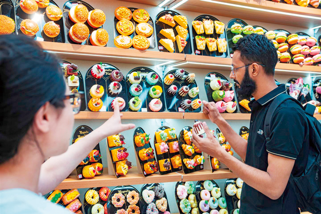 5月30日,在浙江義烏國際商貿城的浦實仿真玩具店內,客商正挑選各國美食造型的冰箱貼。這些冰箱貼造型逼真、色彩鮮艷,受到采購商青睞?!?/a>
