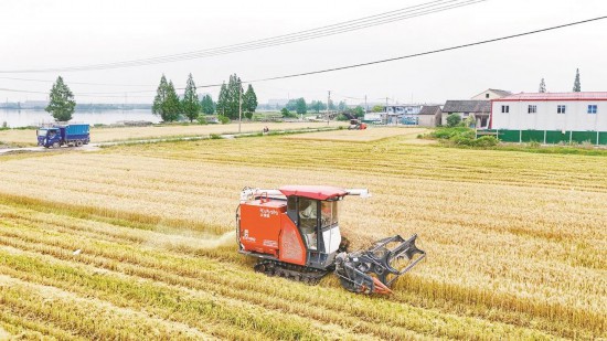 5月15日,紹興市濱海新區孫端街道的麥田里一派繁忙景象。金黃的麥穗隨風起伏,多臺聯合收割機在田間轟鳴穿梭,飽滿的麥粒通過自動化傳送帶直接裝車,運往現代化烘干中心,盡顯農業機械化收割帶來的高效與便捷?!?/a>
