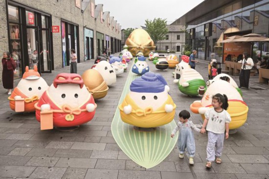 近日,在嘉興市區南湖天地,數十個粽子造型的卡通人偶塑像抓住了市民的眼球。隨著端午節越來越近,嘉興的節日味道也越來越濃,商家們通過不同方式營造文旅消費新場景?!?/a>