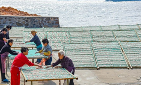 秋風起,玉環海邊居民忙著曬魚鲞,在東沙漁村,魚干在陽光的照耀下鋪滿網架,成為海邊獨有的風景。