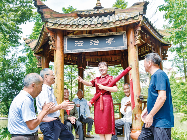 “黨代會精神指方向,‘兩個先行’齊奮進……”金華婺城區金華道情非遺傳承人趙海琴這段時間成了“香餑餑”,已先后到金華蔣堂、瑯琊、沙畈等鄉鎮開展宣講,她用說唱道情的形式向大家宣講浙江省第十五次黨代會精神,廣受歡迎。(吳潮宏)?!?/a>