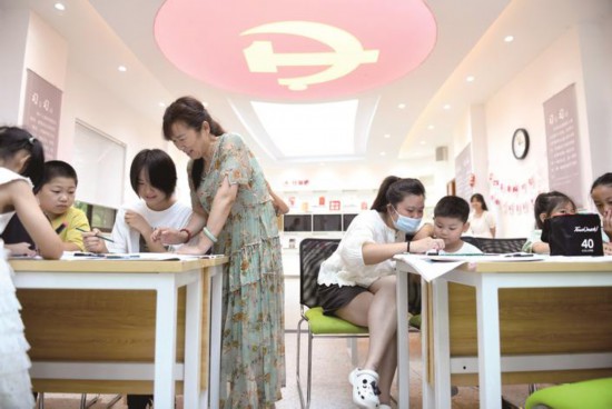 7月25日下午,嘉興秀洲區高照街道黨群服務中心請來農民畫老師,教轄區的小朋友學畫農民畫,讓他們了解這一非物質文化遺產,從小研學,代代相傳。(馮玉坤)?!?/a>