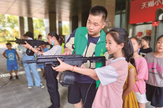 7月31日,嘉興經開區長水街道聯星社區暑期俱樂部聯合公益組織,在“八一”建軍節來臨之際,邀請社區退役軍人在金樓廣場與孩子們互動。退役軍人們重溫了部隊生涯,手把手教孩子們如何射擊,讓孩子們體驗了小小“神槍手”的感覺?!?/a>