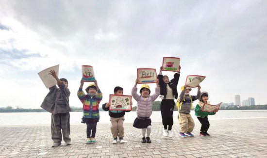 11月23日上午,在嘉興市區南湖邊,一幼兒園組織“畫筆贊紅船、我為家鄉送祝?!被顒?,孩子們手舉稚嫩的畫作,在南湖畔歡呼雀躍。(王輝)?!?/a>