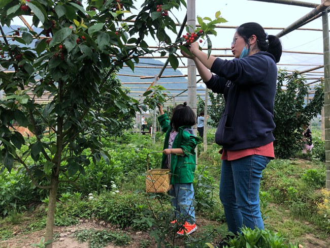 除了櫻桃、土豆外,村民、游客還可憑券購買其他農特產品,如鵝蛋、茶葉、山茶油、竹制品等,品種豐富,且都是純正的農家土貨。