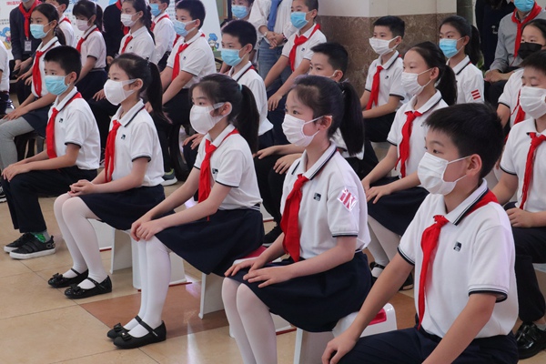 孩子們聆聽了在疫情防控這一特殊時期下的開學第一課《在一起,“筷行動”》。祝舒銘 攝