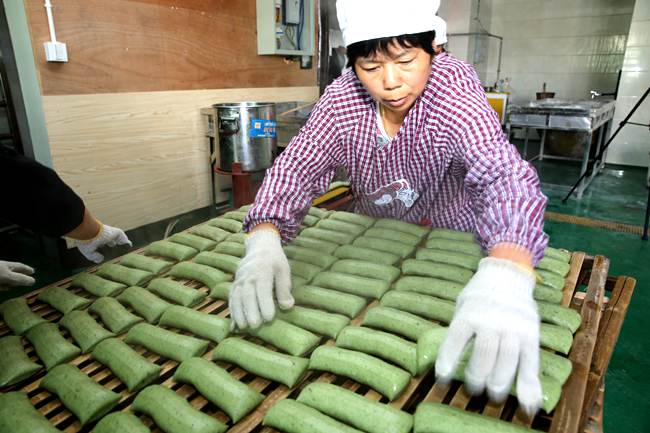 30多年前,陽春年糕走上產業化。1982年,村里就開始采用機器加工年糕。最初,加工年糕的機器是從外地買來的。后來,村民郭楚、朱偉堯分別研制了加工年糕的機器,一臺賣到2萬多元。