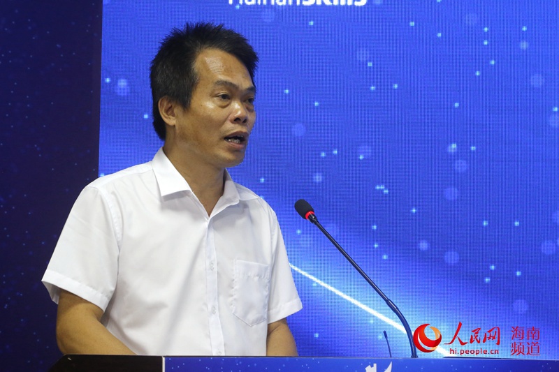 海南省人力資源開發局黨組成員、副局長周運詩介紹本屆賽事相關情況 人民網海南頻道枉源 攝
