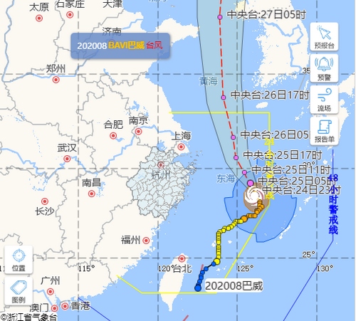 記者從氣象部門獲悉,預計“巴威”將以每小時10~15公里的速度沿東經126度附近向偏北方向移動,今天夜里在北緯29度附近轉向西北方向移動,逐漸向舟山市東部海域靠近,25日下午距離舟山市偏東方向最近260公里左右,強度逐漸加強,最強可達強臺風級。今天明天浙江省北部、中部、南部海域有4~6米的巨到狂浪,近海海域海浪預警級別為黃色。省氣象臺10時發布海上臺風警報,受高空槽切變影響,明后兩天強對流天氣增加,局地強降雨增多。