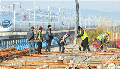 1月2日,位于湖州德清縣康乾街道的湖杭鐵路東坡特大橋連續梁施工現場,中鐵十一局集團工人放棄休假堅守崗位,抓緊施工確保工程質量、沖刺進度。作為2022年杭州亞運會重點配套工程和“軌道上的長三角”重要節點工程,湖杭鐵路設計速度350公里/小時,力爭在杭州亞運會前開通運營。