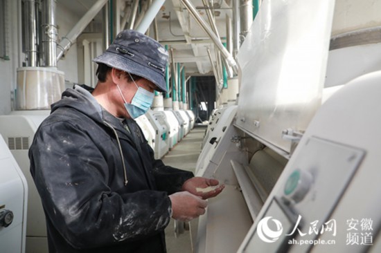 人民網合肥1月20日電 (韓震震、張。┤涨,在安徽省蒙城縣恒瑞面粉有限公司,品控部的小伙子楊詩佳,不時到車間取樣,檢驗各種指標后,通過炸油條、蒸饅頭、搟面條等各種熟食實驗,驗證產品效果,持續跟蹤面粉質量。