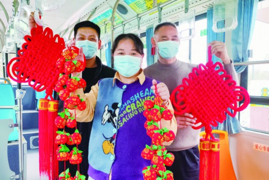 2月2日,金華市公交集團營運一公司工作人員在公交車上精心布置“!弊、小燈籠等吉祥飾物,讓乘客感受到濃濃的春節氣氛。