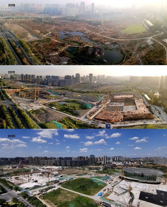 2018年至2020年間,杭州運河亞運公園變遷。田曉攝