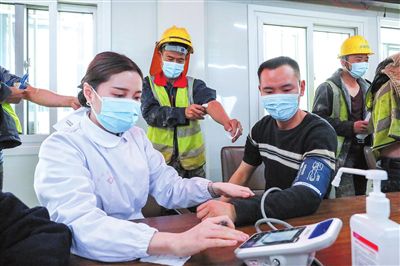 湖州城市集團日前組織愛山健康體檢中心醫護人員開展“健康體檢進工地”三服務活動,為南太湖CBD項目的200多名建設工人免費提供健康體檢服務。