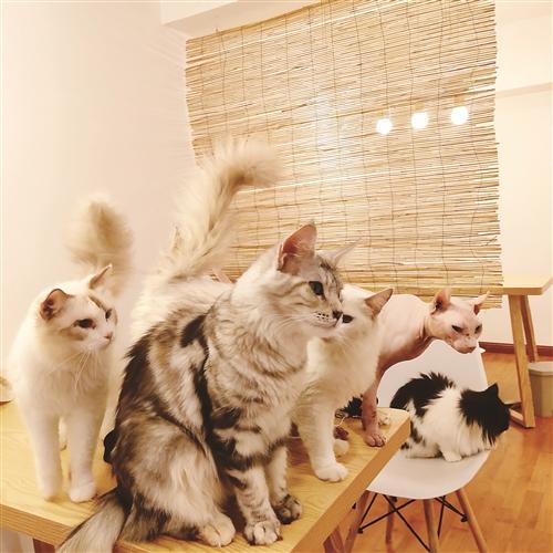 “剛開始養了兩只,后來什么品種的貓都想接觸,自家貓就養多了!毙】陆榻B,在上海等地遇見不少經營情況良好的貓咖,受此啟發,2020年初,她開起了自己的第一家貓咖館。截至目前,店里共養著50只貓“店員”。