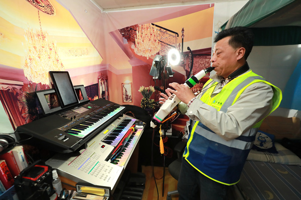 中建三局第一建設工程有限責任公司阿里健康項目的工地生活區,一群工友吃好晚飯正走在回寢室的路上,忽然響起一陣悠揚的演奏聲。他們循著音樂來到王祝林的房間,欣賞他的音樂表演。一曲奏罷,工友們似乎還沒有盡興,不約而同地喊出:“來一段,再來一段!”于是,又一曲新樂章從房間中傳出,在工地上飄揚……