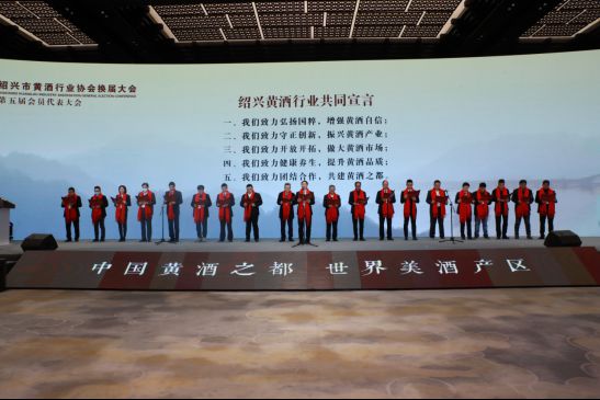 紹興黃酒企業代表發表《紹興黃酒行業共同宣言》。沈鴻泉攝