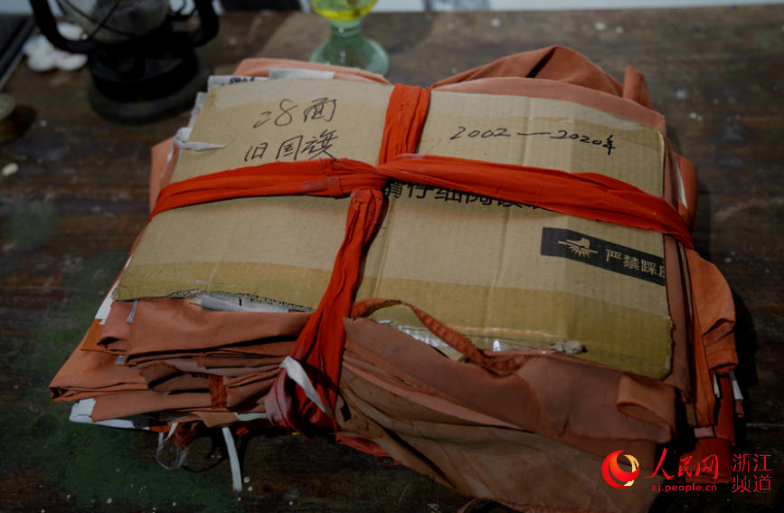 朱宗鶴老人把用舊的國旗整齊疊好收藏。人民網 金忠耀攝
