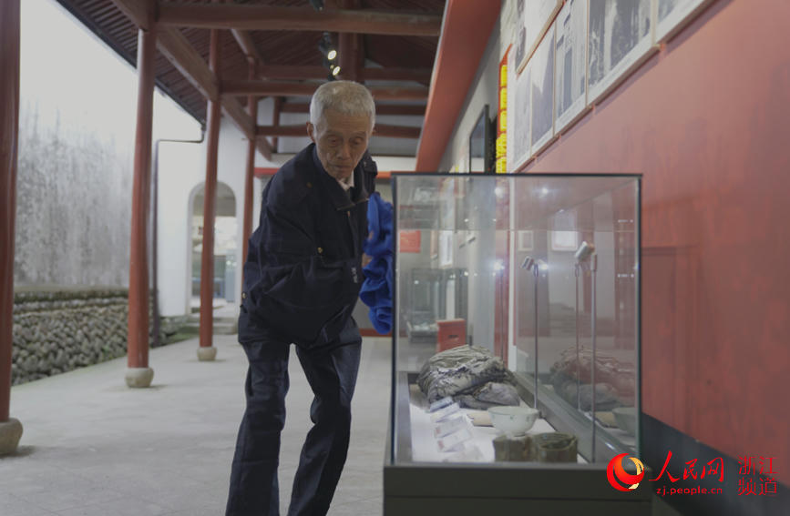 一位滿頭白發的老人,獨自拿著五星紅旗,緩緩走向旗桿,再小心翼翼將旗系在旗桿上,站直身體,右手把旗用力向外一拋……這一幕,每天都會在浙江遂昌革命紀念館前的小廣場前上演。