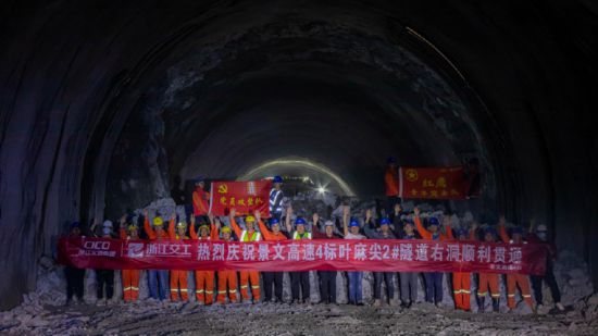 4月27日,浙江交通集團景文高速首個特長隧道——葉麻尖2#隧道右幅順利貫通。