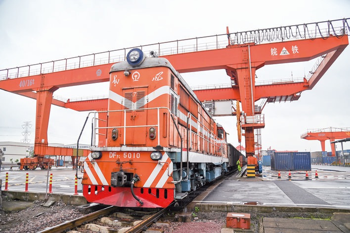 5月4日,由100個標箱編組而成,滿載日用百貨、文具、布料、五金工具、機械零配件等出口貨物的中亞班列,經金華海關監管后從鐵路金華南貨場鳴笛啟程,駛向哈薩克斯坦、烏茲別克斯坦和吉爾吉斯斯坦!拔逡弧奔倨,“義新歐”金華平臺始發的中歐中亞班列不停歇,共計開行6列。(胡肖飛)