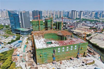 5月6日,位于寧波海曙、總投資11億元的寧波工業互聯網研究院產業園項目建設如火如荼。目前,項目已完成主體結構施工階段計劃的90%,整體工程預計明年6月竣工。徐能、張昊樺攝