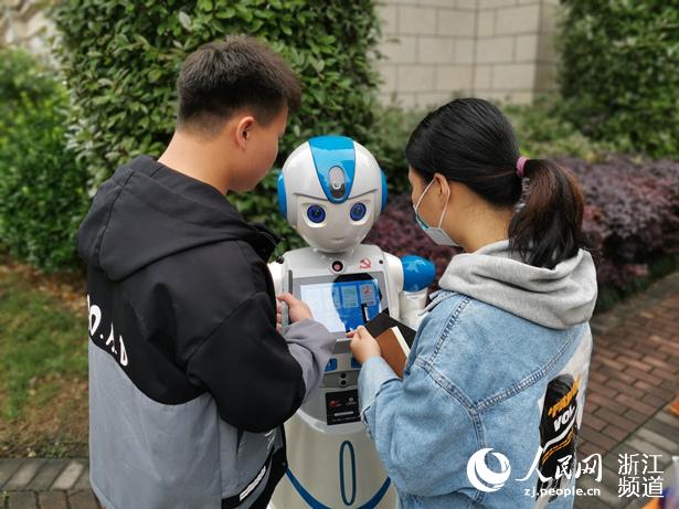市民正在與機器人“紅小智”互動。人民網 金忠耀攝