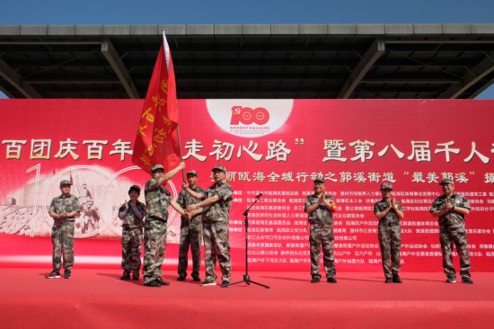 5月9日,溫州甌海區“百團慶百年 重走初心路”暨第八屆千人徒步活動舉行,全區統一戰線廣大愛黨愛國人士齊聚一堂,100個團隊近1000人重走溫州和平解放進軍路,向建黨100周年獻禮。區委常委、統戰部長潘曉勇為千人徒步團隊授旗,并發布活動令。民革溫州市委會專職副主委陳慕林,區政協副主席沈巖明、李芍、徐海曼等參加活動。
