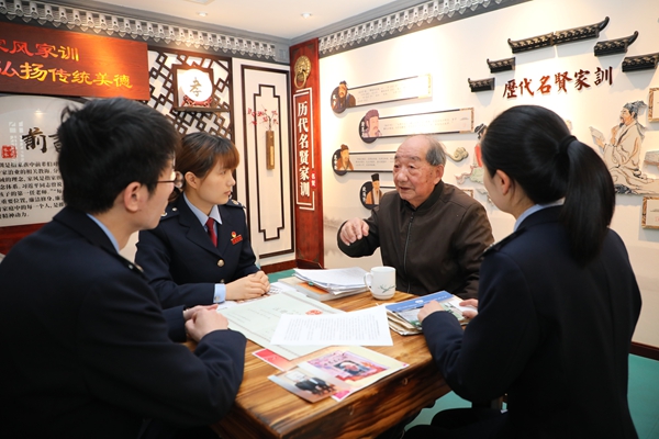 活動現場還邀請了新中國第一代稅務人、90歲的退休老干部陳茂炯與在場青年干部進行“初心對話”。從1949年參加稅收工作,到如今鮐背之年仍筆耕不輟寫下20余萬字的稅收會計實務工具書,陳茂炯曾親身經歷社會主義建設初期艱苦環境的磨煉,也親眼見證了改革開放后稅收事業的快速發展,他的言傳身教令在場青年干部倍受激勵。90歲老人與“90后”新青年對話的最后,他以“天生我才‘終’有用”來勉勵大家不要忘記為什么出發,要始終朝著人民需要的方向前行,為稅收事業奮斗終生。