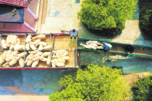 在湖州長興縣呂山鄉永盛牧場,民企捐贈的430頭湖羊日前上車運往“新家”——四川馬邊彝族自治縣。呂山鄉是“中國湖羊之鄉”,以湖羊為媒,依托品牌優勢,大力開展“東羊西送”助力中西部增收,連續7年為新疆、內蒙、甘肅、四川、寧夏及東北三省送去優質湖羊種羊2.5萬頭。(許旭)