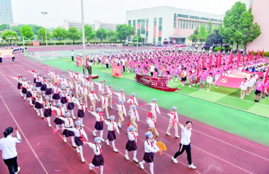 黨的誕生、抗日戰爭、解放戰爭、抗美援朝、改革開放……5月21日,金華開發區秋濱小學的運動會開幕式上,各個班的主題方陣展示了中國共產黨100年來波瀾壯闊的歷史畫卷。學校楊老師說,運動會開幕式上一個個主題方陣點燃了師生們的愛國熱情,讓學生更好地了解中國共產黨百年奮斗的偉大征程。(李建林)