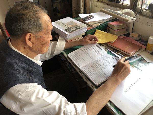 在每天收到的各份報紙上,章思滾會將最新政策內容裁剪下來,用于自己學習及備課。人民網 張帆攝