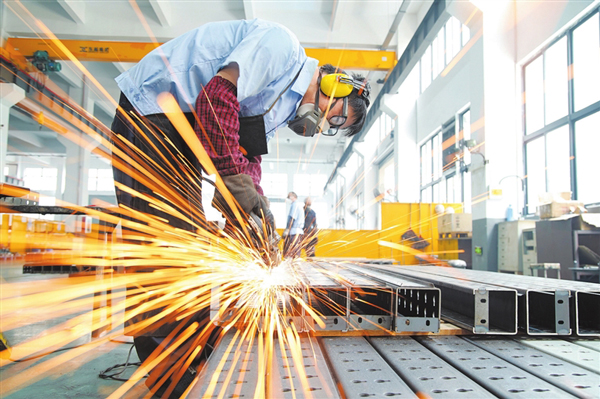 6月3日,湖州南潯經濟開發區湖州德奧機械設備有限公司,工人正趕制自動化物流設備。近年來,該企業借力長三角一體化發展,以科技創新為抓手,深耕長三角各地市場,加速自動化倉儲、物流設備研發。(張斌)