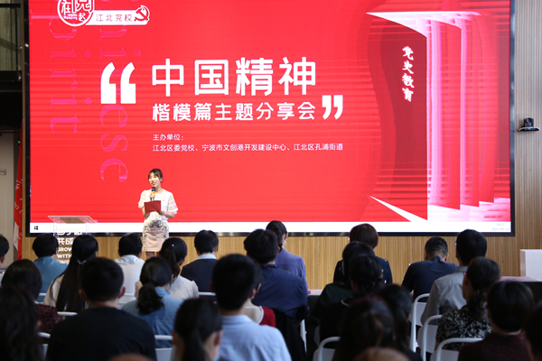 作為江北區“黨課開講啦”的一次現場活動,本次分享會由江北區委黨校、文創港開發建設中心、孔浦街道等共同舉辦,以“青年講給青年聽”的形式,宣講分享大家對中國共產黨百年輝煌歷程中仁人志士身上所體現的“中國精神”的理解,將黨課現場變成體驗精神共振、感受時代力量的“初心回顧之旅”。
