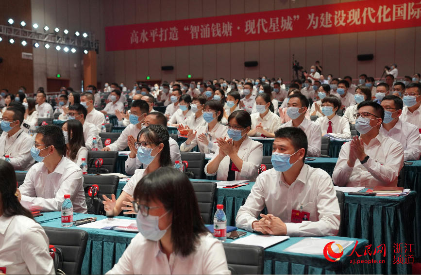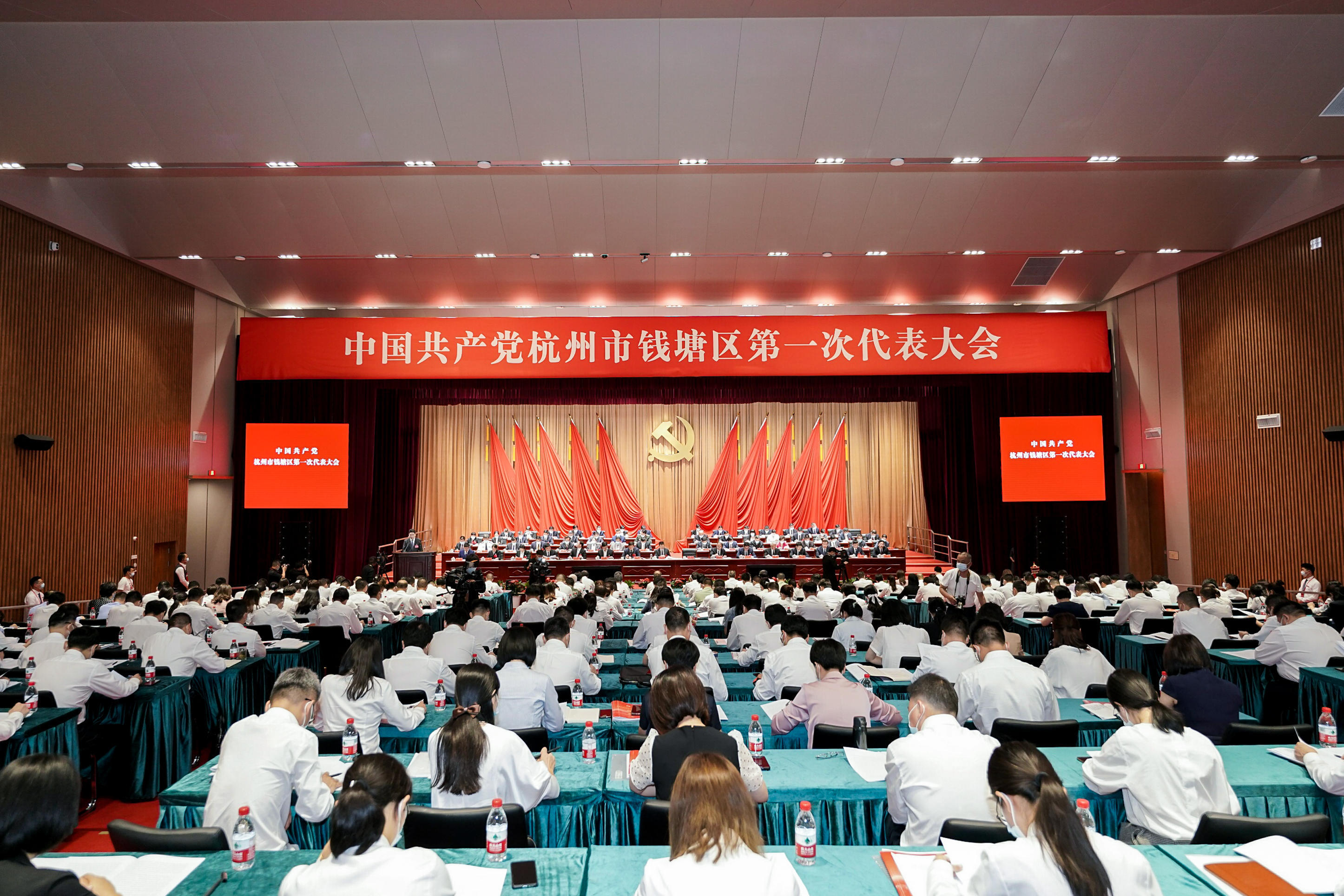 中國共產黨杭州市錢塘區第一次代表大會開幕。錢塘區委宣傳部供圖