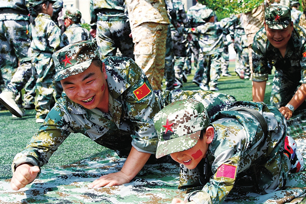 湖州南潯區南潯中學內,“同心向黨、愛我中華”主題親子活動日前舉行。湖州南潯新區幼兒園家長和孩子身著迷彩服,共同進行障礙跑、匍匐前進等運動。加強親子溝通,共同享受趣味健身帶來的快樂。(張斌)