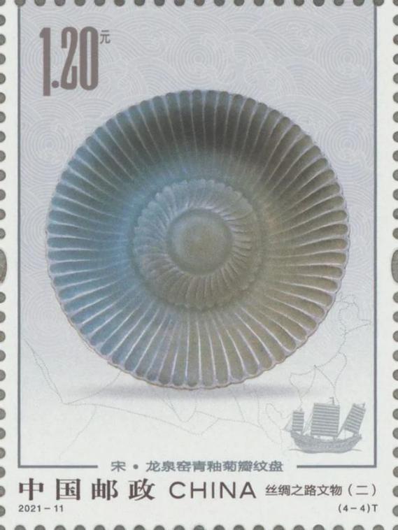 此次入選特種郵票的“宋·龍泉窯青釉菊瓣紋盤”,發現于“南海I號”沉船,是沉船上眾多龍泉青瓷中極具代表性的作品。充分印證了龍泉青瓷在開拓“海上絲綢之路”中的重要歷史地位,反映出自宋代起龍泉青瓷就已成為中國對外貿易的重要商品之一,是中國與世界不斷深化的文化交流和友好往來的使者,見證了和平合作、開放包容、互學互鑒、互利共贏的“絲路精神”。