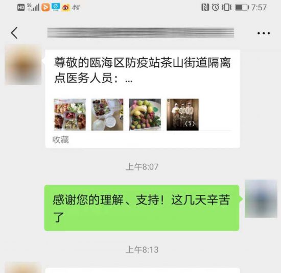 “每次送餐至門口時醫護人員都熱心的詢問飯菜夠不夠吃,對我們的生活真的很關心,也很用心,更進一步消除了我們對隔離點產生的恐懼……讓我們感覺到了家的溫暖!”6月14日,正值端午佳節,駐守在溫州甌海區茶山街道某醫學觀察點工作人員和醫護人員收到了一封來自留觀人員林先生“特殊”的感謝信。紙短情長,寥寥千字承載著說不盡的感激。