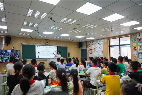 “什么是‘掃黃打非’?”“‘掃黃打非’的危害有哪些?”6月15日,紹興越城區群英小學錄播室內熱鬧非凡,一場別開生面的“掃黃打非”主題班課正在開展,來自各年級的50余名學生代表正在聚精會神的觀看“掃黃打非”動畫宣傳片,認真聆聽宣傳員講解,學習“掃黃打非”科普知識。趣味問答環節,同學們熱情高漲,爭先恐后按下答題器踴躍競答,爭當“掃黃打非”小能手。與此同時,全校各年級近610名學生也正以班級為單位同步舉辦本期“掃黃打非”主題班課。