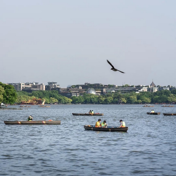 生態保護、環境美化、文脈延續、景觀修復、水質治理、建筑整治……連續十年實施西湖綜合保護工程,實現西湖水“一月一換”,水質得到全面改善;保護修繕、恢復重建了180多處自然和人文景觀,恢復西湖水面0.9平方公里,“三面云山一面城”的城湖空間格局得以保護,“一湖兩塔三島三堤”的西湖全景重返人間。