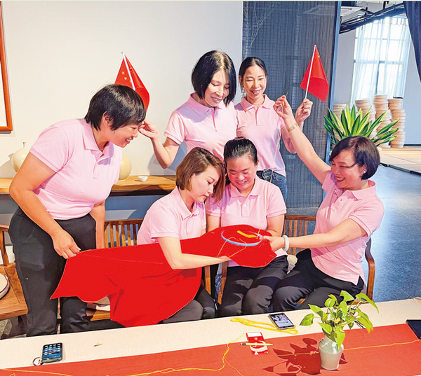 “祝偉大的黨生日快樂!祝偉大的祖國繁榮昌盛!”上午9時30分,金華市古婺窯火陶瓷文化有限公司江東鎮園區內,女企業家吳蘭燕在一個婺州瓷素坯上刻下了自己對黨的祝福。和吳蘭燕一樣,來自金華市金義新區的35名女企業家在該區企業家協會的組織下來到這里,集體參觀婺州窯歷史珍藏館,在婺州瓷素坯上繪制黨旗黨徽,并合作繡制黨旗,慶祝黨的百年華誕。(章馨予、胡睿哲、吳瑜濤)
