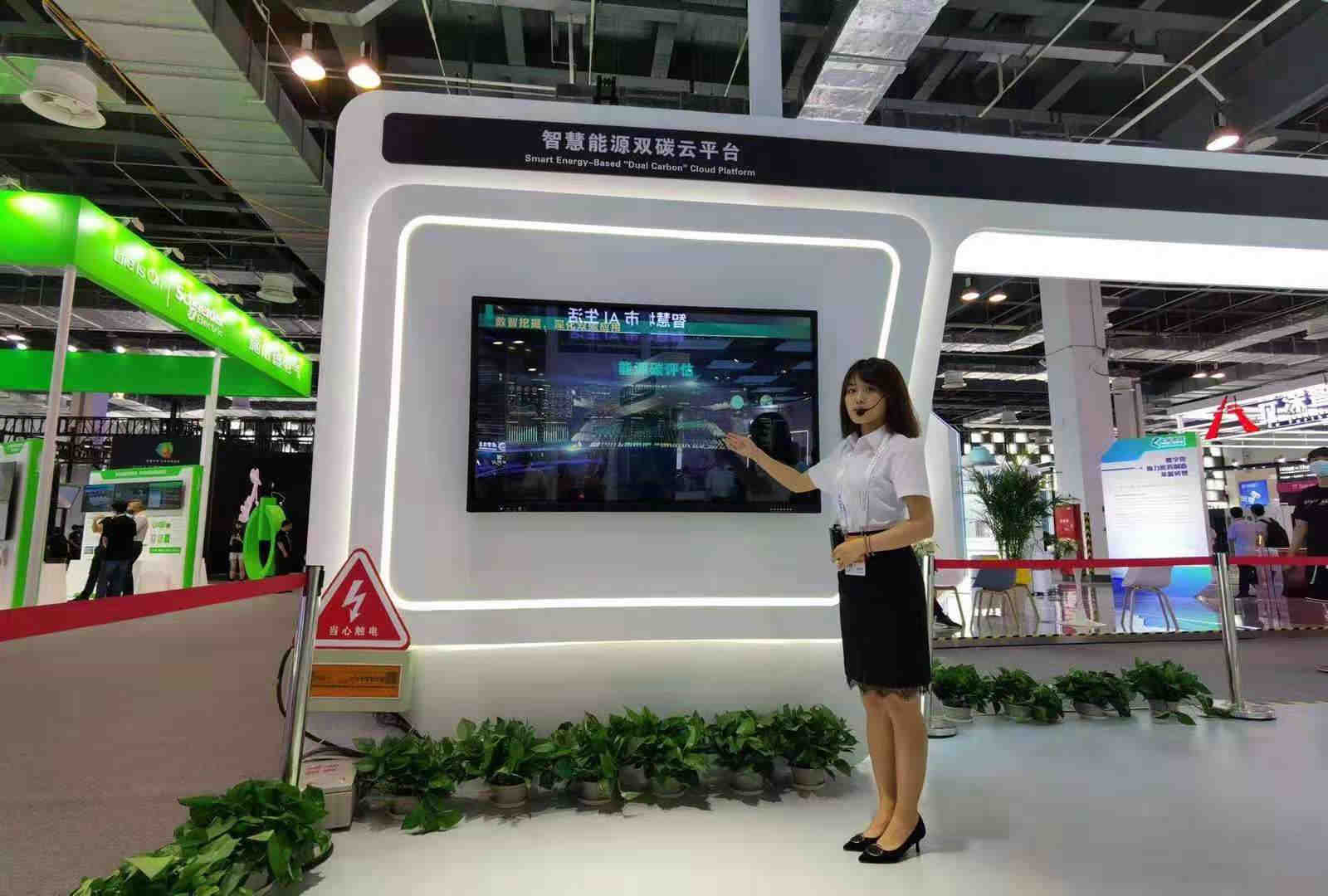 在國網電力展臺,采用觸摸互動的方式展示了雙碳戰略下,人工智能和新一代數字技術的建設應用成果。其中,城市智慧能源中心分布式三聯供系統的能源綜合利用率可達到80%左右,較傳統火電的能源綜合利用率40—50%有大幅度提高,分布式發電系統和吸收式空調技術的應用可降低夏季大電網的峰谷差。該智慧能源“雙碳”云平臺也是國內首個政企共同打造的“雙碳”平臺。