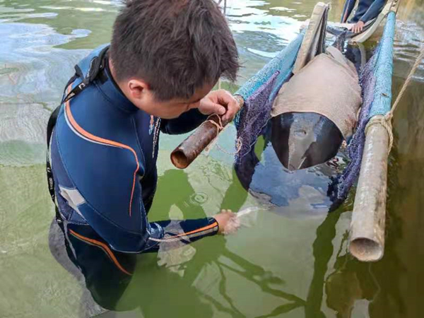 救援人員投喂瓜頭鯨。臨海市委宣傳部供圖